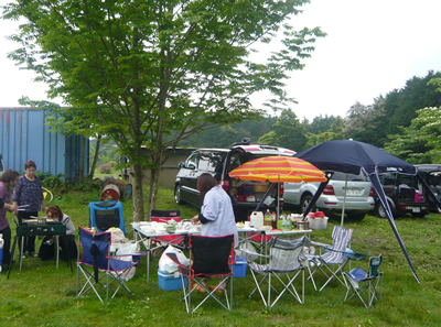 BBQの用意が出来、みんなで食べる!