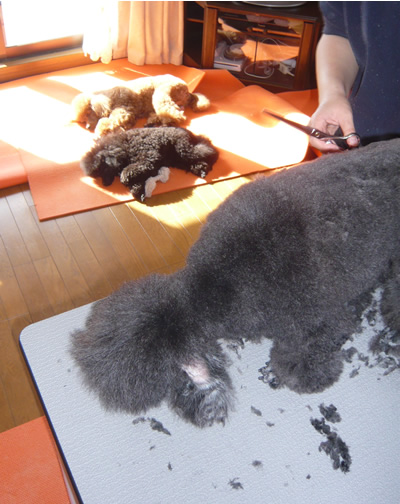 パピー・クリップのベビぷーを洗って右側だけカットし・・・・力尽きました・・・・。