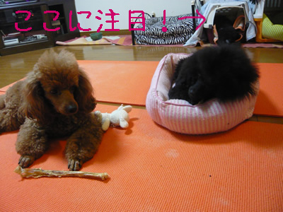 目をキラキラさせてお座りして待ってるのがハディ子お嬢です。