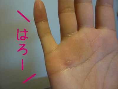 マメが出来ては潰れて、またその上に出来ては潰れて・・・・という跡が。