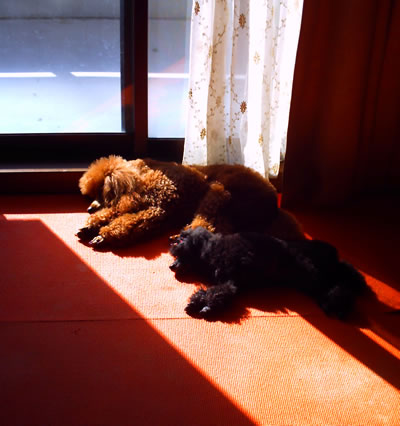 珍しく?神楽と仲良く並んでひなたぼっこの図。