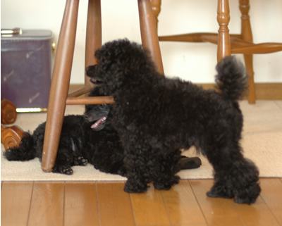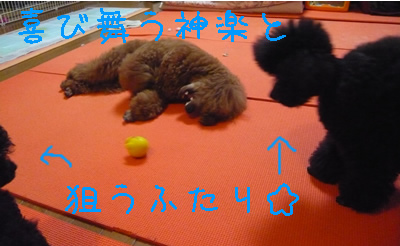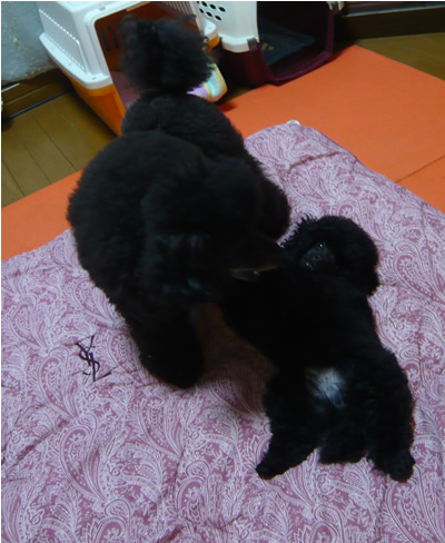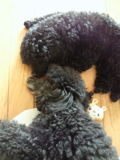 トリミングが終わって遊ぶ兄弟二人。