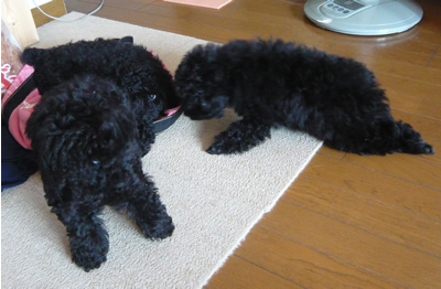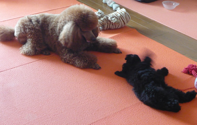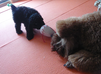 子犬は、まだ1回目のワクチンしか終わってないので、他のわんこと遊ばせたり出来ないけど、
