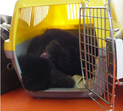 怒って唸り疲れたのか(笑)、勝手にマークのクレートに入って寝るお嬢。