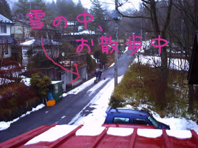 雪の中、元気にお散歩にいった母上と妹ちゃん+わんこ3つ。
