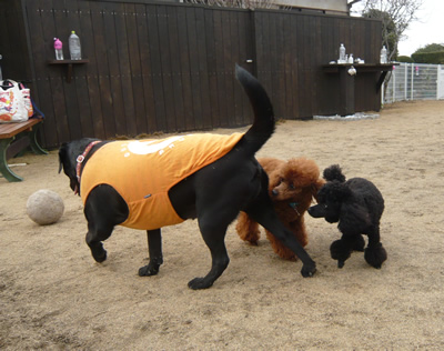 少し遅めのランチを終えて、午後はレトリーバーちゃんたちと入り乱れて