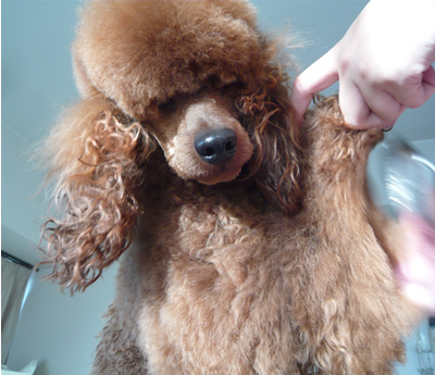 」との希望で、この色に。モモはしばらくシャンプー出来ないので(交配後1ヶ月はダメらしいです)