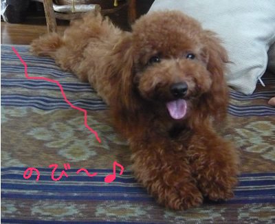 くぅく、お得意の「敷物ポーズ」