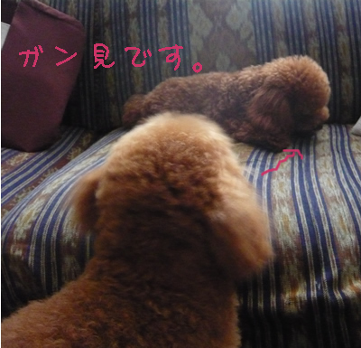 神楽のトリミング中、ずっとヤキモチを焼いていた、可愛いくぅく