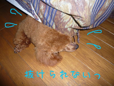 帰り間際、何故かソファの下に入り、出られなくなった神楽・・・・・