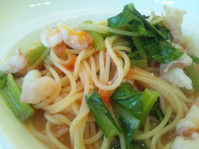 (この写真はそのうちの1種類。エビと小松菜のフレッシュトマトソース)