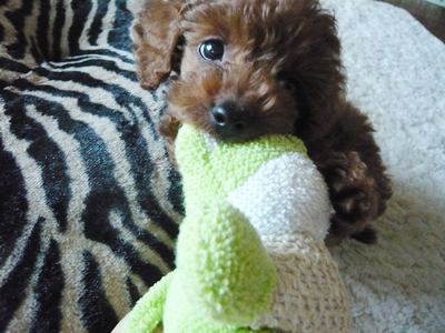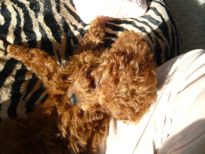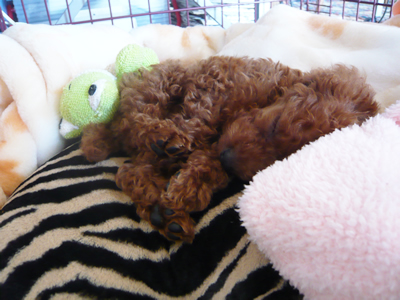 のんびり屋さんのようで、周りがどんなに騒ごうとも(大人のトイ・プードル7匹にもまれてました)、何度ピンポーンが鳴ろうとも、とてもマイペース。